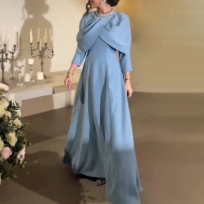 Autumn Winter Elegant Solid Color Office Dresses For Women O Neck Shawl Pearl Diamond Sequin High Waist Holiday Long Maxi Dress