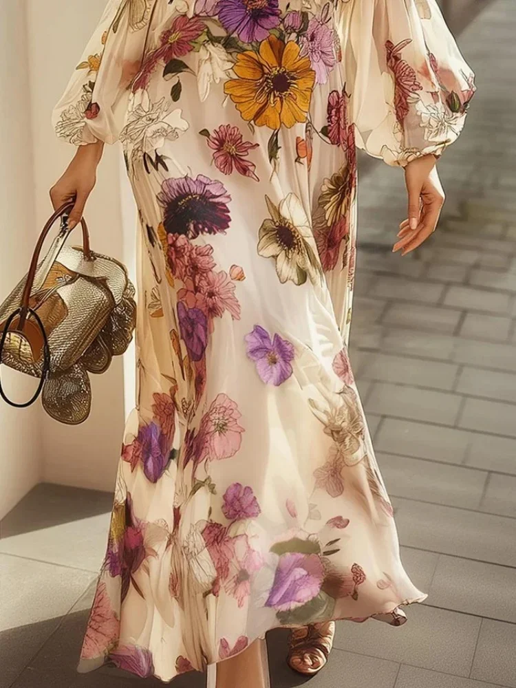 Be the first to review “Elegant Long-sleeve Chiffon Dress Fashion Spring Autumn Lantern Sleeve Ruffle Waist Flower Printing Party Dresses Female”